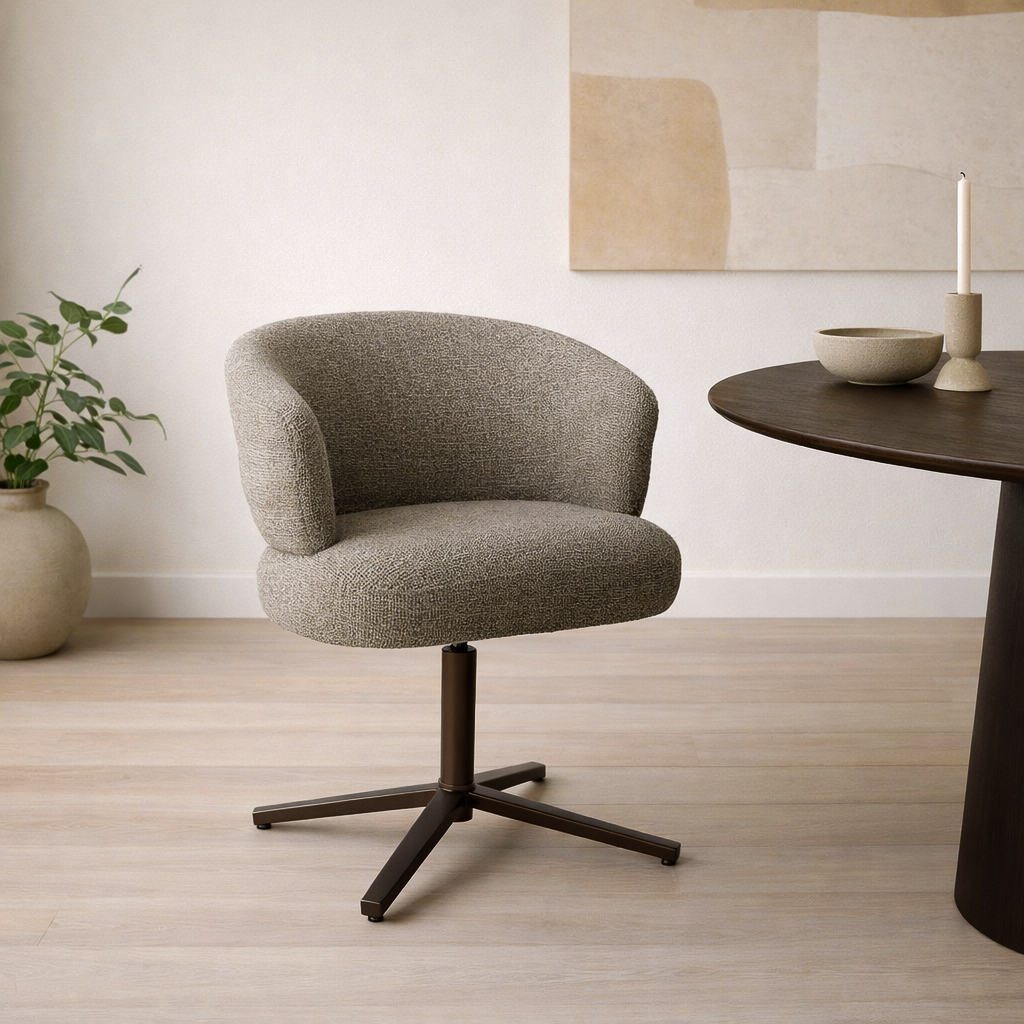 De Blake eetkamerstoel combineert comfort en stijl in een eigentijds ontwerp. De zachte bekleding en de uitnodigende, afgeronde vorm zorgen voor een aangename en ontspannen zit. Het zitkussen met pocket springs biedt extra comfort en optimale ondersteuning, ideaal voor lange avonden aan tafel. Dankzij de 180° draaifunctie ervaar je extra gebruiksgemak en bewegingsvrijheid. De Blake Beige en Blake Desert zijn uitgevoerd met een chique bruin onderstel, wat de stoel een warme en verfijnde uitstraling geeft. Zo is de Blake niet alleen bijzonder comfortabel, maar ook een stijlvolle toevoeging aan iedere eetkamer.