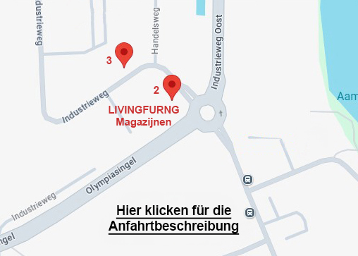 Livingfurn verfügt über zwei große Lagerhallen am Industrieweg 2 en 3 in Elst (Gld) mit einer Gesamtfläche von mehr als 15.000 m².