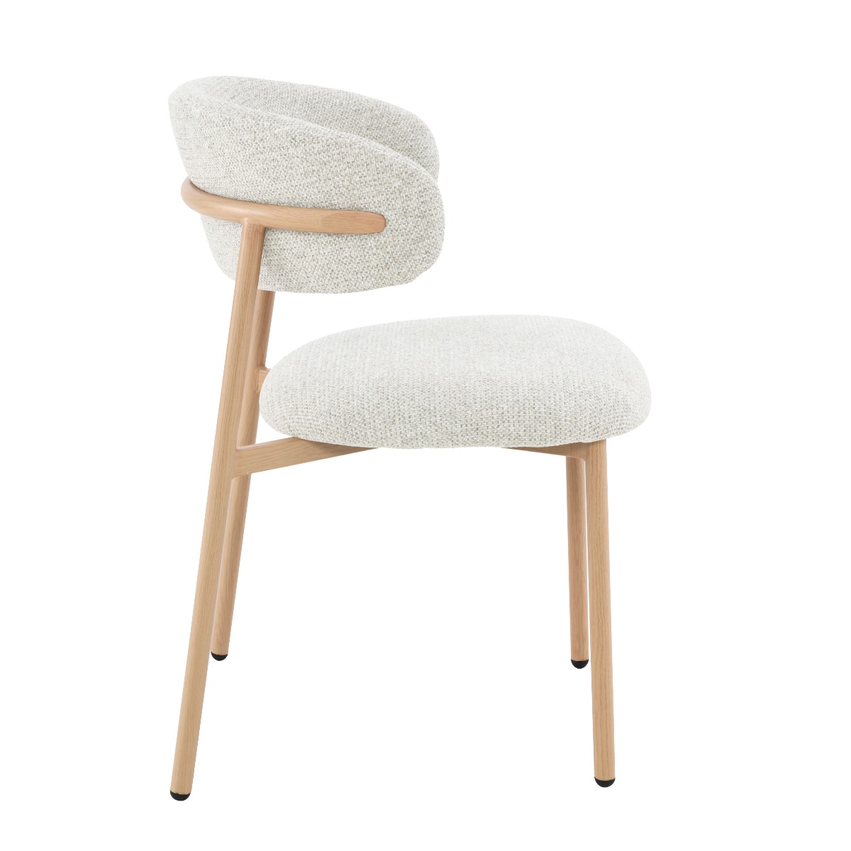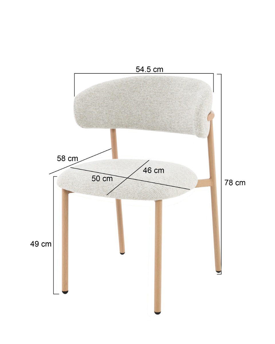De Micah eetkamerstoel straalt ingetogen klasse uit dankzij het moderne silhouet en het uitnodigende zitcomfort. De gebogen rugleuning biedt een prettige ondersteuning, terwijl het comfortabele zitvlak uitnodigt tot urenlang tafelen. De slanke metalen poten in een lichte, natuurlijke eiken finish geeft de stoel een frisse, Scandinavisch geïnspireerde look die prachtig combineert met lichte houttinten en minimalistische interieurs. Of je nu een diner organiseert of geniet van je ochtendkoffie – met Micah zit je altijd goed.