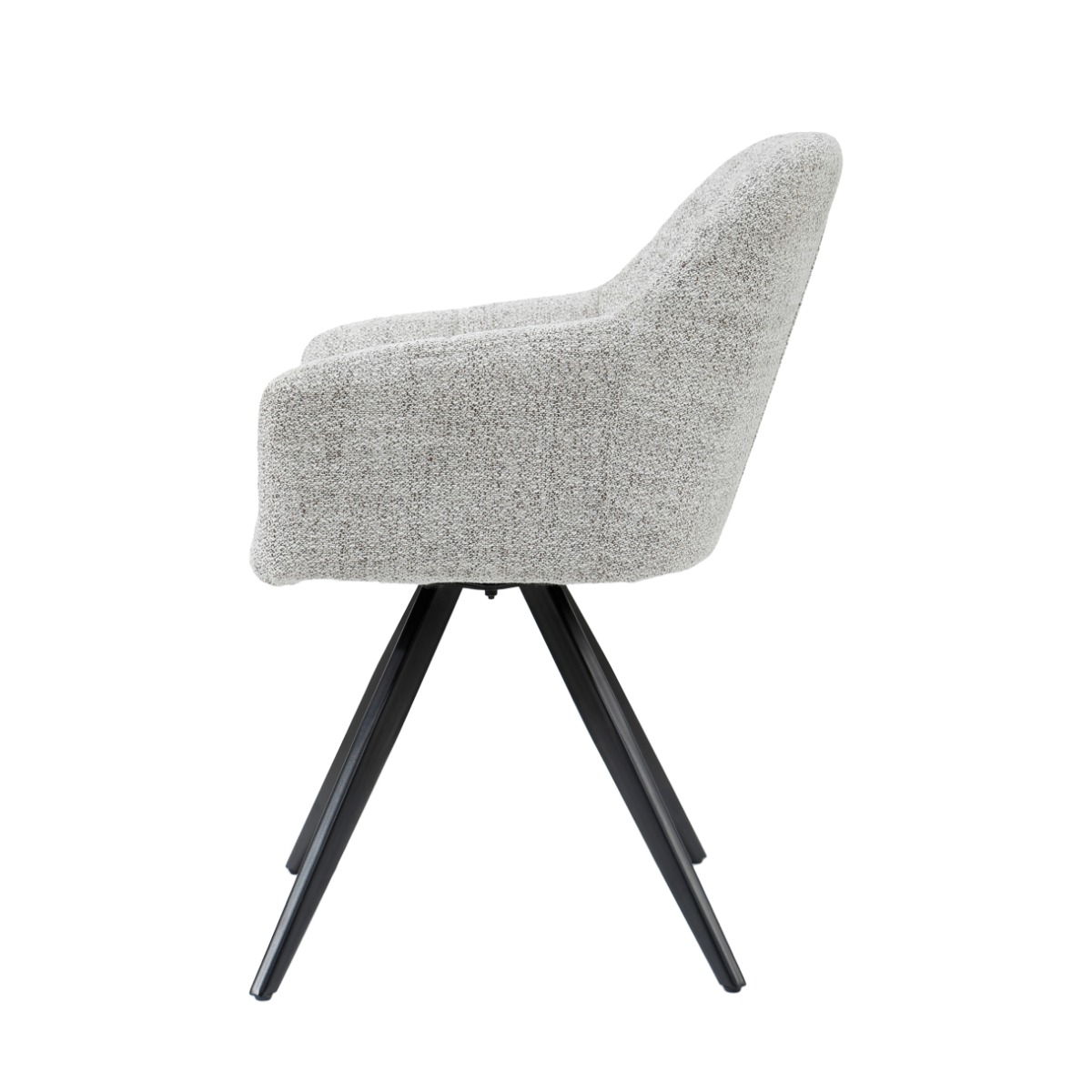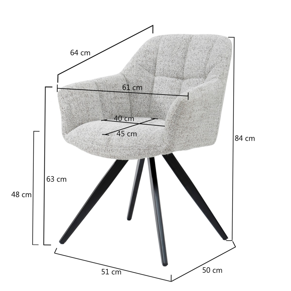 Eetkamerstoel Tommy combineert luxe en comfort met een stijlvolle uitstraling. De ruime kuip met rijke vulling biedt ultiem zitgemak, terwijl de 180 graden draaifunctie zorgt voor een gemakkelijk in- en uitstap. De slanke, zwarte poten geven de stoel een moderne en elegante touch. Perfect voor wie op zoek is naar een verfijnde toevoeging aan de eetkamer!