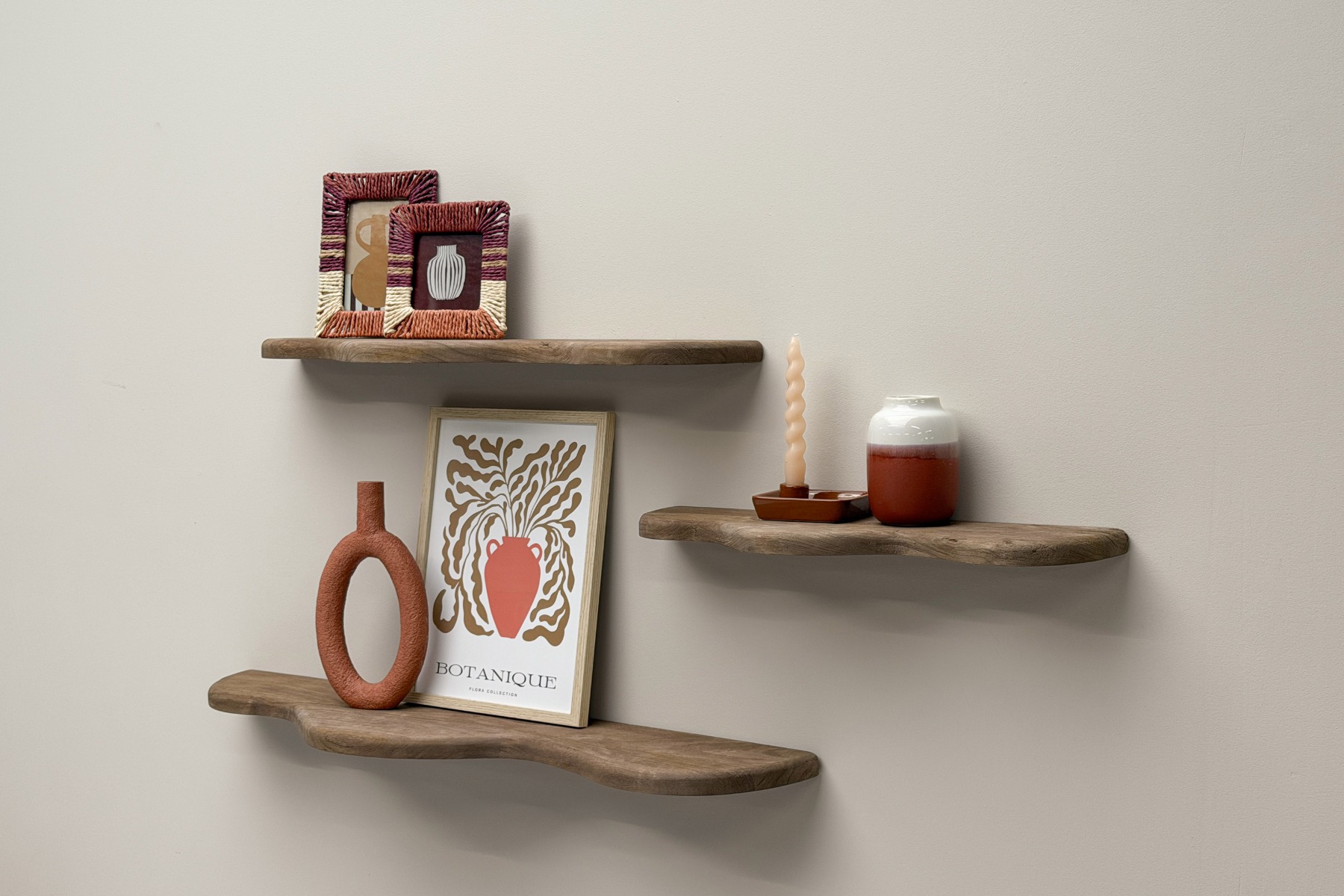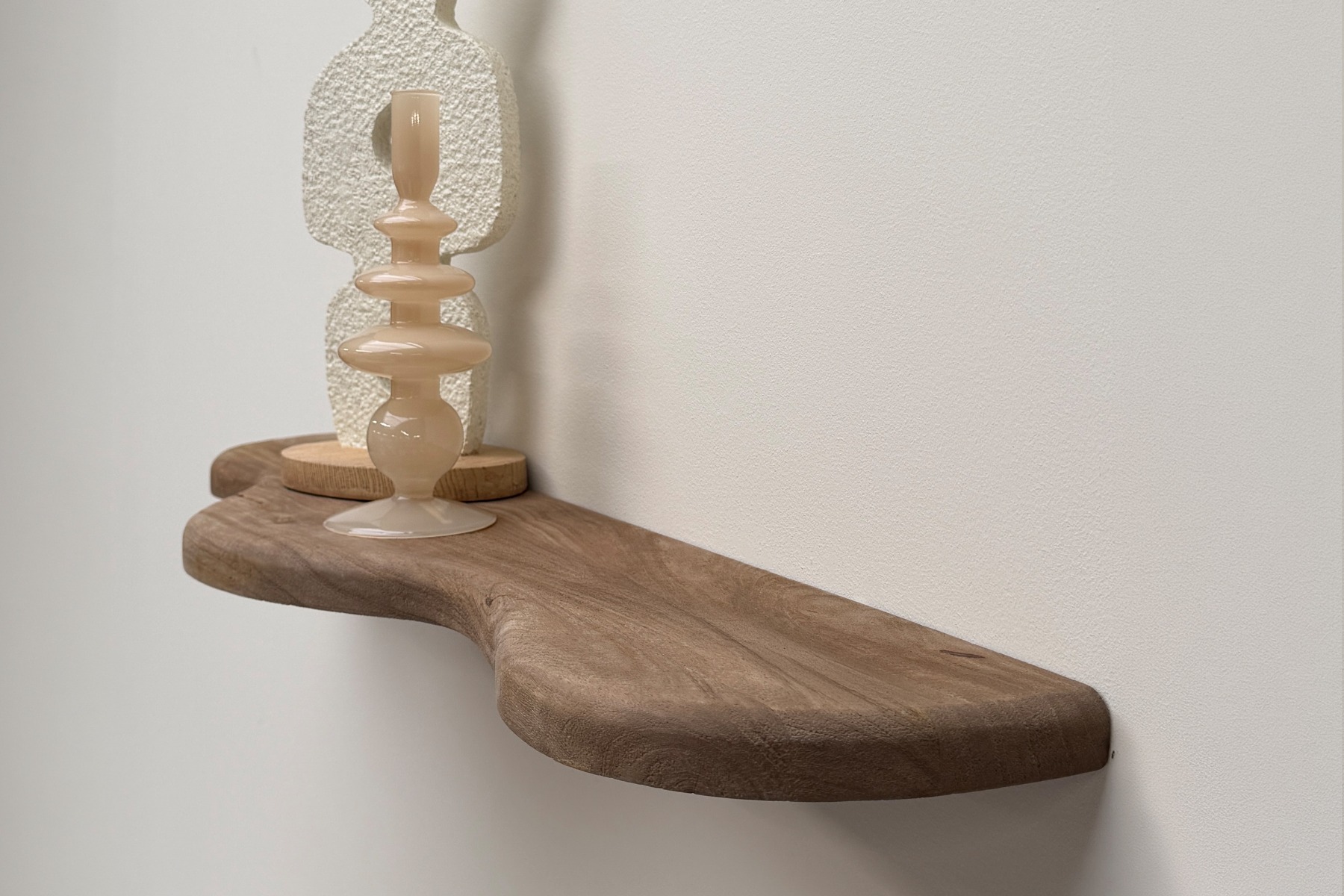 Breng natuurlijke warmte in je interieur met de Livo wandplanken, gemaakt van massief hout met een speels organisch design en afgewerkt in de zachte kleur Almond. Livo is verkrijgbaar in verschillende maten die ook prachtig met elkaar te combineren zijn voor een speels geheel. De plank wordt strak en onzichtbaar aan de muur bevestigd, perfect voor het stijlvol presenteren van accessoires in elke ruimte.
