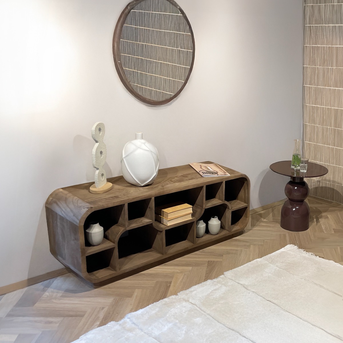 De Morgan tv-meubel van Brix is een stijlvolle en speelse toevoeging aan elk interieur. Dankzij de organische vorm en de speels ingedeelde open vakken biedt dit tv-meubel niet alleen een praktische plek voor apparatuur en accessoires, maar ook een unieke, eigentijdse uitstraling. Verkrijgbaar in de kleuren Almond en Off White, waardoor hij moeiteloos aansluit bij verschillende woonstijlen.