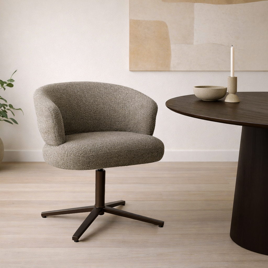 De Blake eetkamerstoel combineert comfort en stijl in een eigentijds ontwerp. De zachte bekleding en de uitnodigende, afgeronde vorm zorgen voor een aangename en ontspannen zit. Het zitkussen met pocket springs biedt extra comfort en optimale ondersteuning, ideaal voor lange avonden aan tafel. Dankzij de 360° draaifunctie met autoreturn ervaar je extra gebruiksgemak en bewegingsvrijheid. De Blake Beige en Blake Desert zijn uitgevoerd met een chique bruin onderstel, wat de stoel een warme en verfijnde uitstraling geeft. Zo is de Blake niet alleen bijzonder comfortabel, maar ook een stijlvolle toevoeging aan iedere eetkamer.