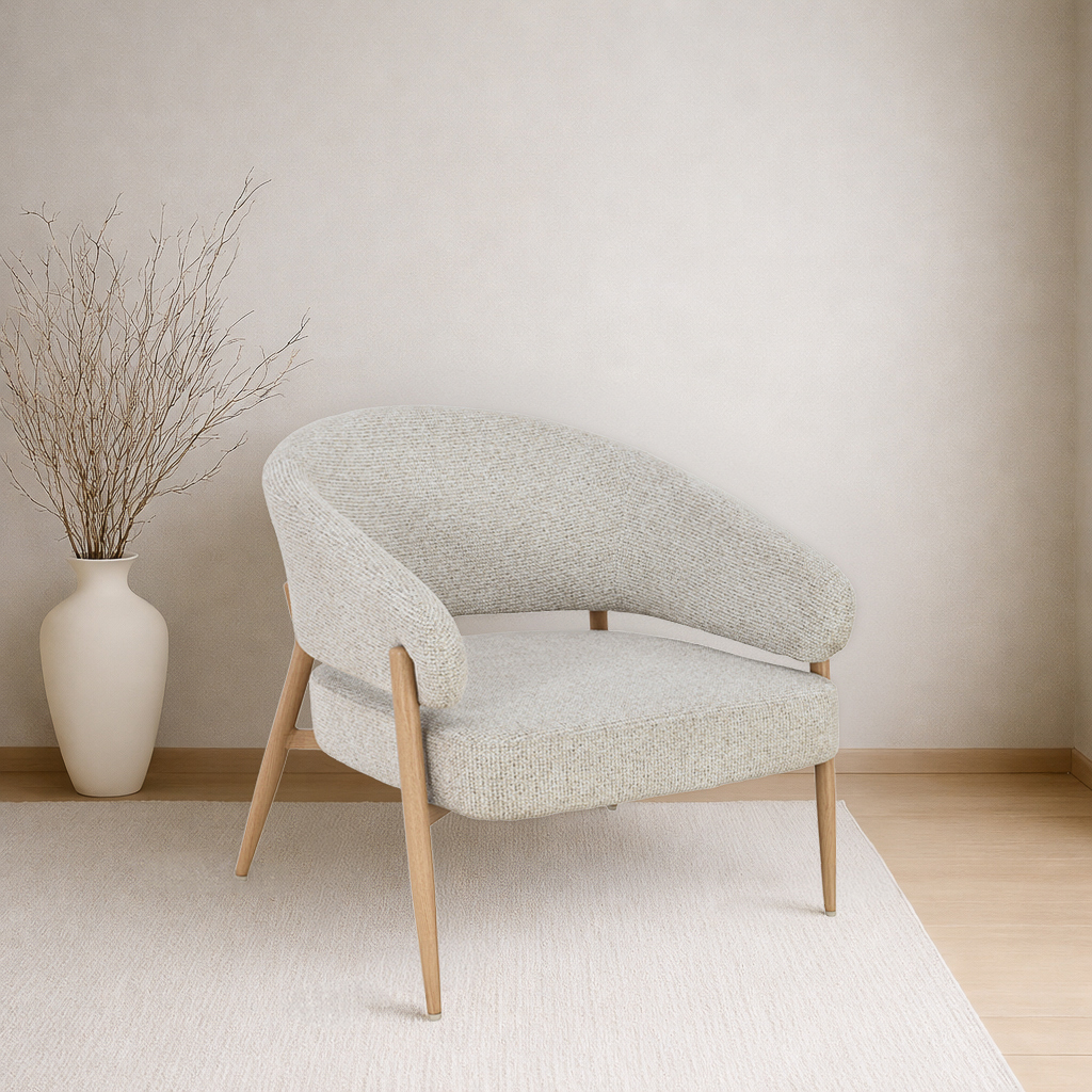 De Dilan fauteuil is een uitgesproken combinatie van modern design en comfortabel zitgemak. De ronde, vloeiende lijnen geven de stoel een uitnodigende uitstraling, terwijl de open zijkanten zorgen voor een luchtig silhouet. De vaste zitting biedt stevige ondersteuning, perfect om heerlijk in te ontspannen. Het subtiel aflopende frame geeft Dilan een speelse, eigentijdse touch die moeiteloos past in zowel een modern als retro interieur. Of je hem nu plaatst in de woonkamer, leeshoek of slaapkamer – met Dilan voeg je karakter én comfort toe aan je ruimte.