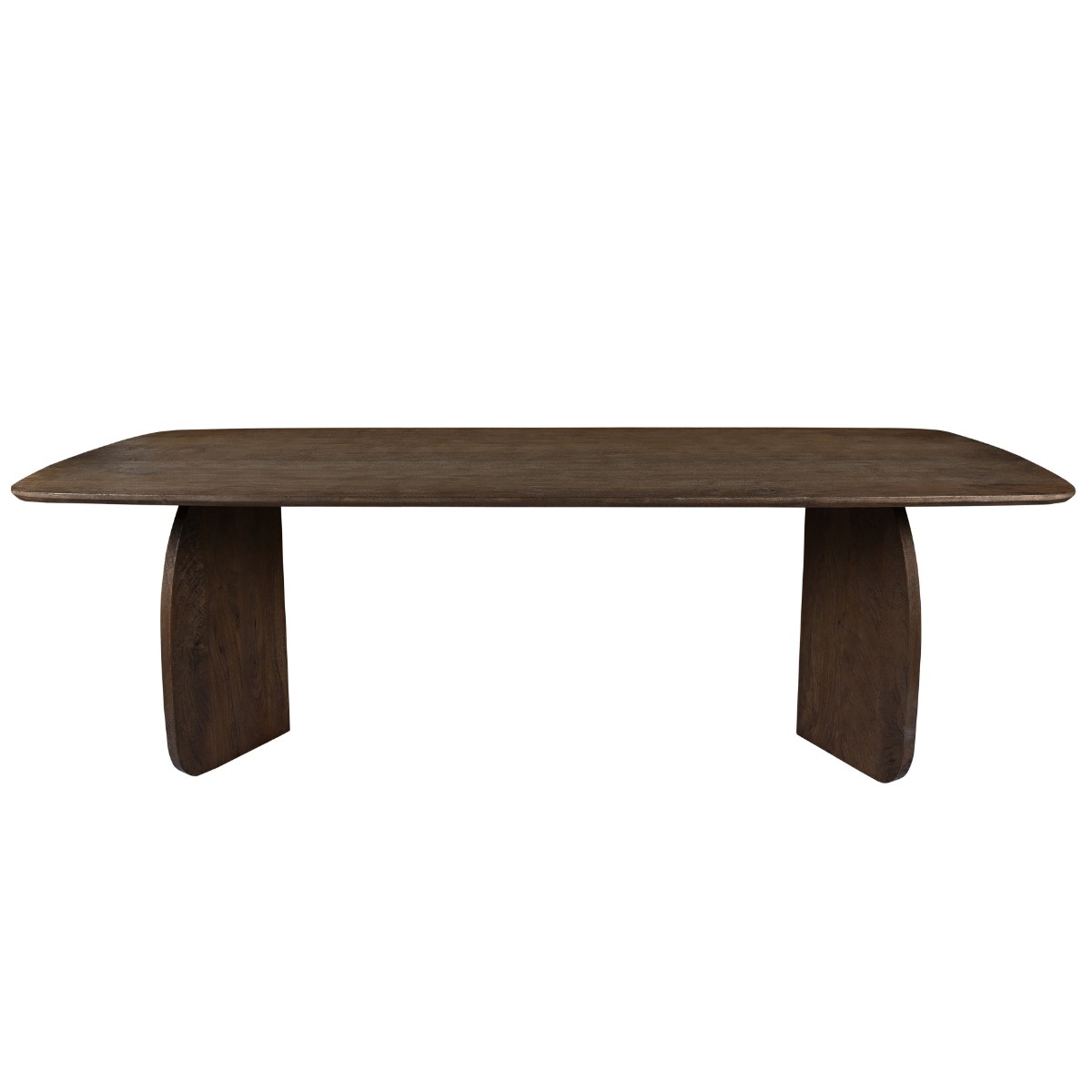 De Trevor eettafel is een stijlvolle blikvanger met een natuurlijke, warme uitstraling. Gemaakt van hoogwaardig massief hardhout, toont deze tafel de prachtige nerftekeningen die kenmerkend zijn voor dit duurzame houtsoort. Het organisch gevormde blad rust op twee stevige, stijlvolle poten die zorgen voor een moderne en unieke look.